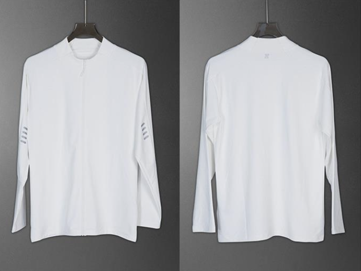 袖に配置された白いライン模様が運動時の視認性を高め、スポーティーで洗練された印象を演出します。