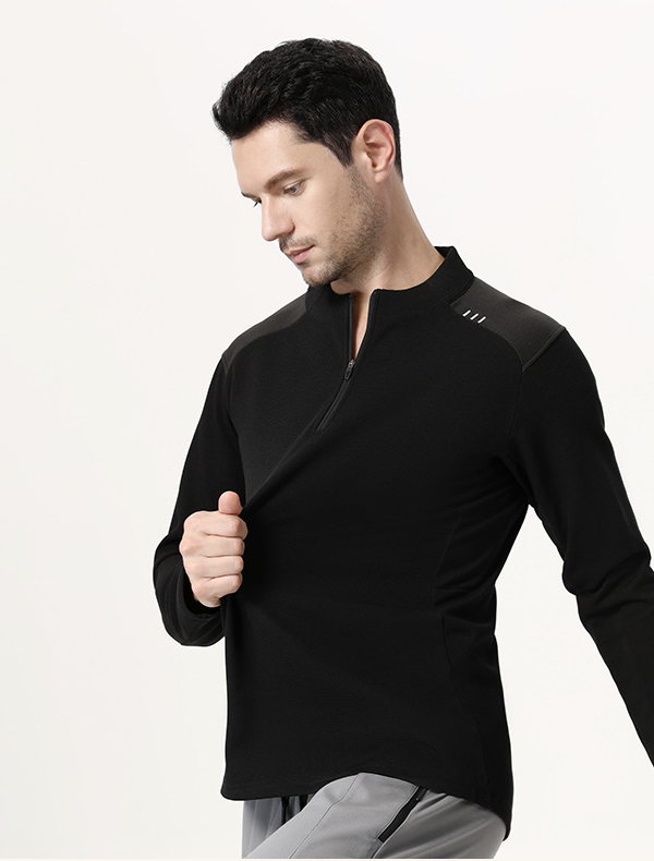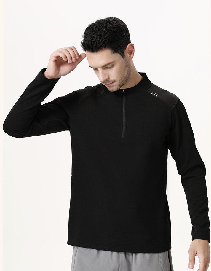 首元のジップで体温調節が簡単にでき、走行中の暑さ対策も手軽に調整可能