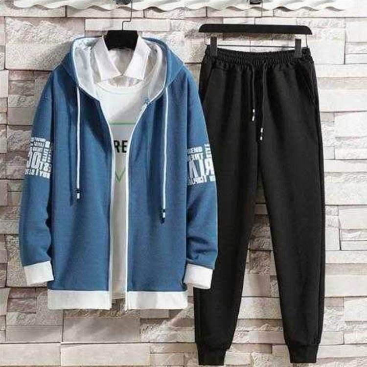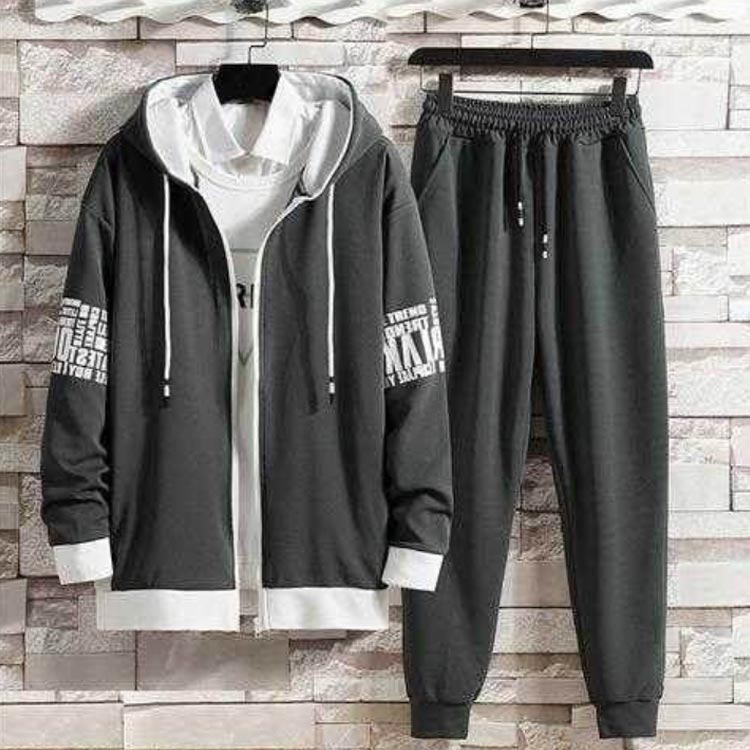 前開きジップアップパーカーとジョガーパンツのおしゃれな組み合わせ。