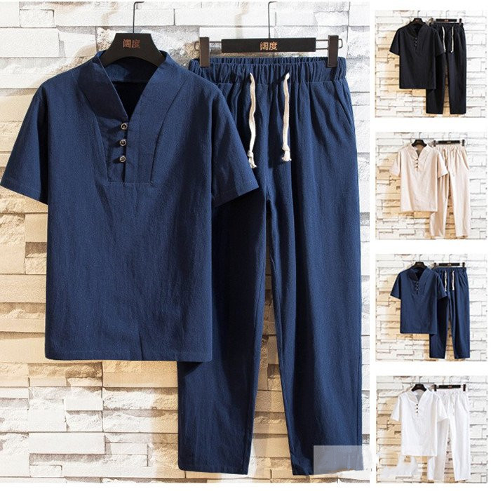 メンズ セットアップ リネンセット 上下セット チャイナ風 夏 綿麻 セットアップ 半袖 ジャージ上下 スポーツウェア
