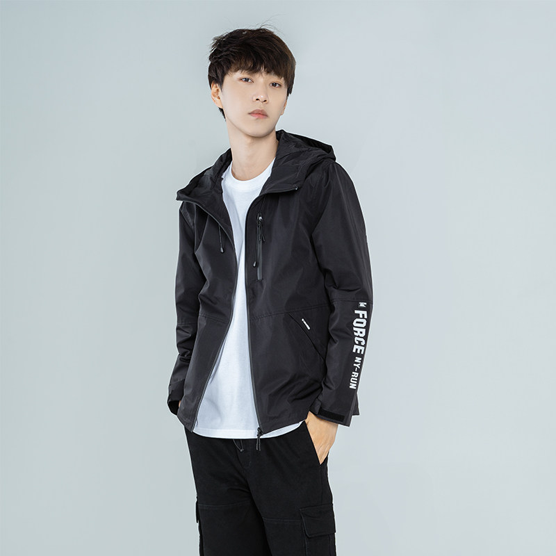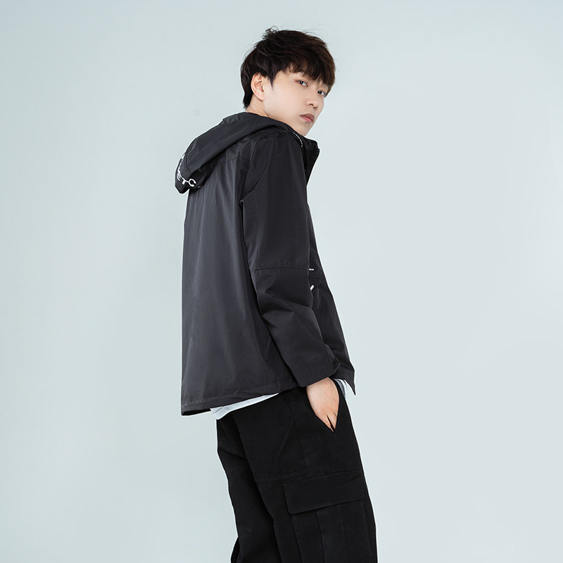 フード付きで天候の変化にも対応でき、複数のジッパーポケットが小物収納に便利です。