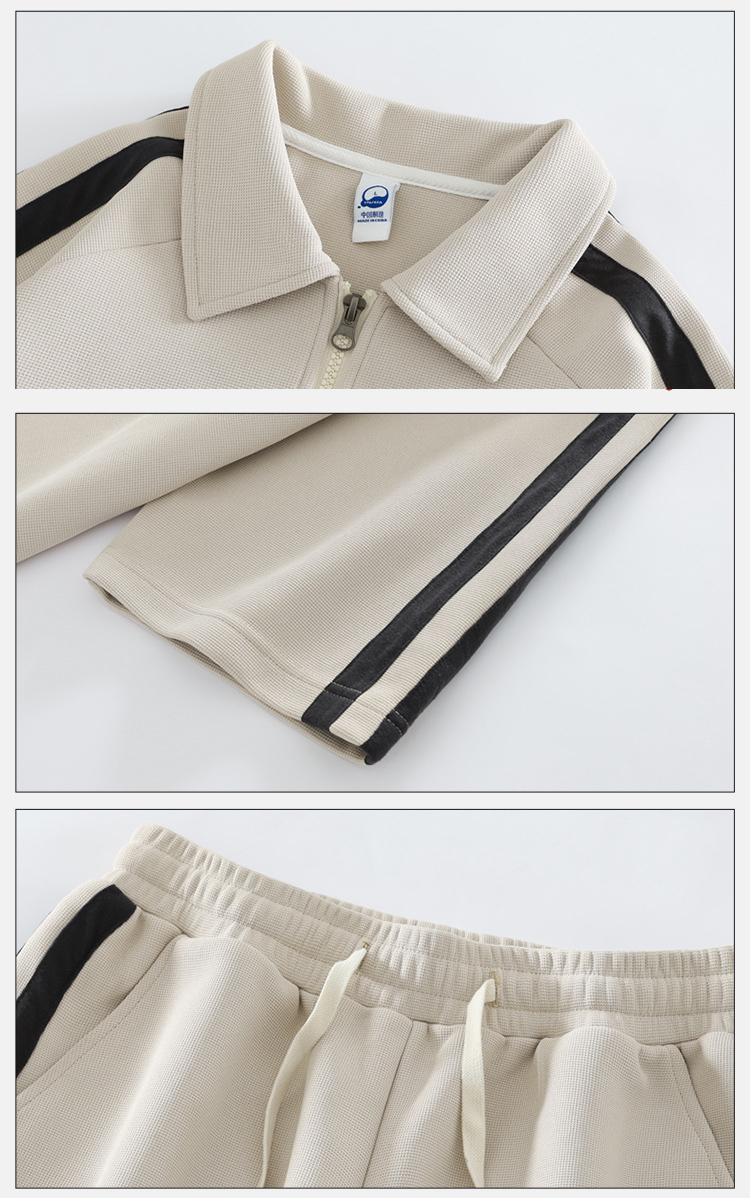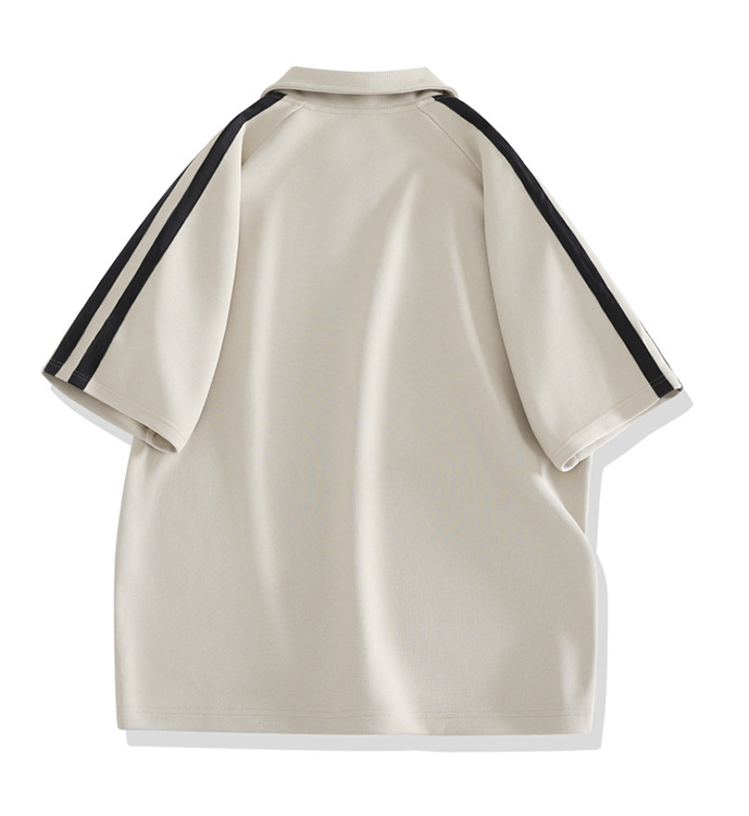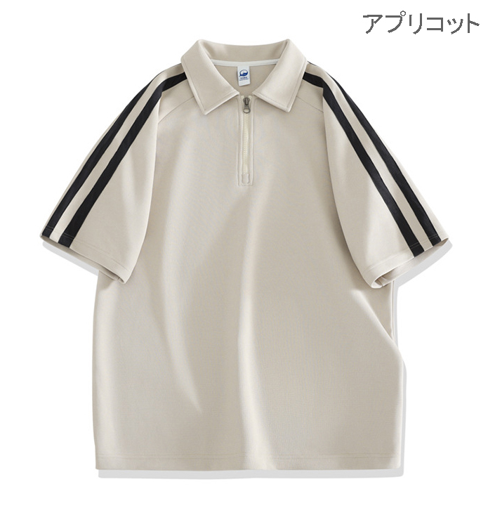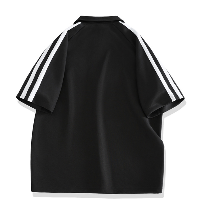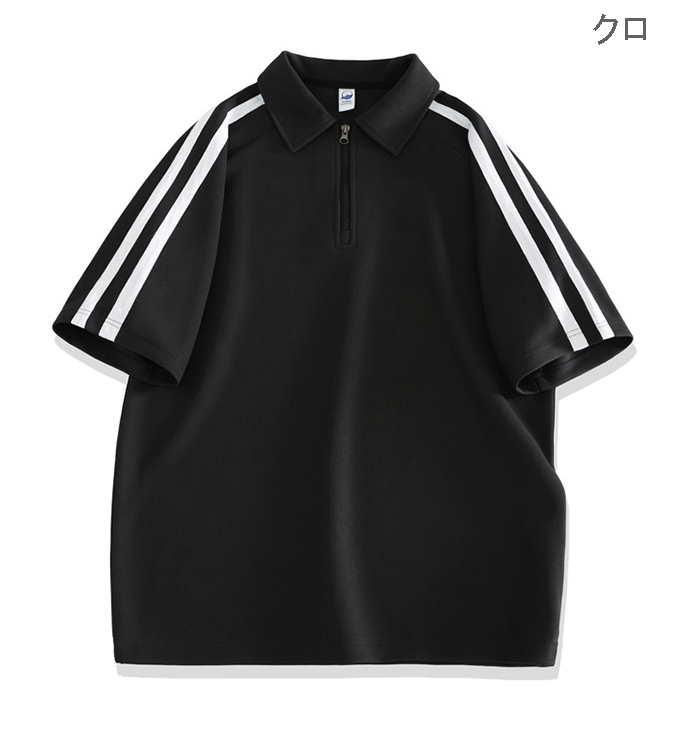 ポロシャツとショートパンツの上下セットで、袖と裾のサイドラインがスタイリッシュなデザイン。