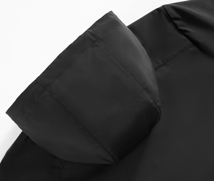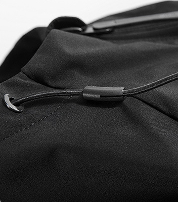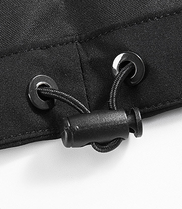 風や雨から頭部を守るフードにはドローコードが付いており、天候の変化にも柔軟に対応